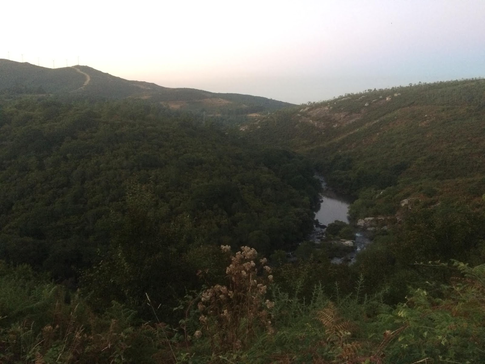 En spesiell opplevelse var det å «vippe over kanten» etter den siste oppstigningen og begynne på ned, ned mot Cee. Da plutselig fikk vi se Havet. Det ga en slags Garborg-ærbødighet og beundring for dette "Sjølve Havet». Og så vakkert, denne gangen var Atlanteren nesten som ei speilblank flate sett ovenfra og da vi kom til Finisterre viste det seg å være slik, heilt stille. Ikke heilt blikkstille riktignok, noen svake lange bølger gjorde at et undervanns-skjær dukket opp med jevne mellomrom.